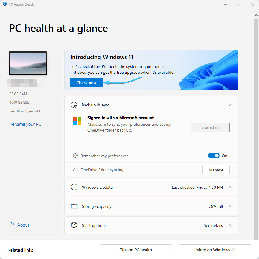 5. Click the “See all results” button. If the top icon is lit green, then you will be able to install Windows 11 operating system on your device. If the icon is lit yellow, then you need to solve some things before installing. For example, enable TPM 2.0 in BIOS. If the icon is lit red, then you cannot install Windows 11 operating system, and you will only be able to install the Windows 10 version.