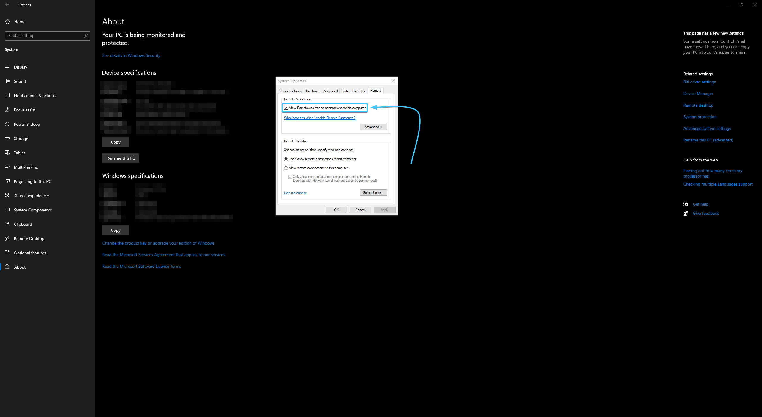 4. The “System Properties” window will appear. From the top, open the “Remote” tab.