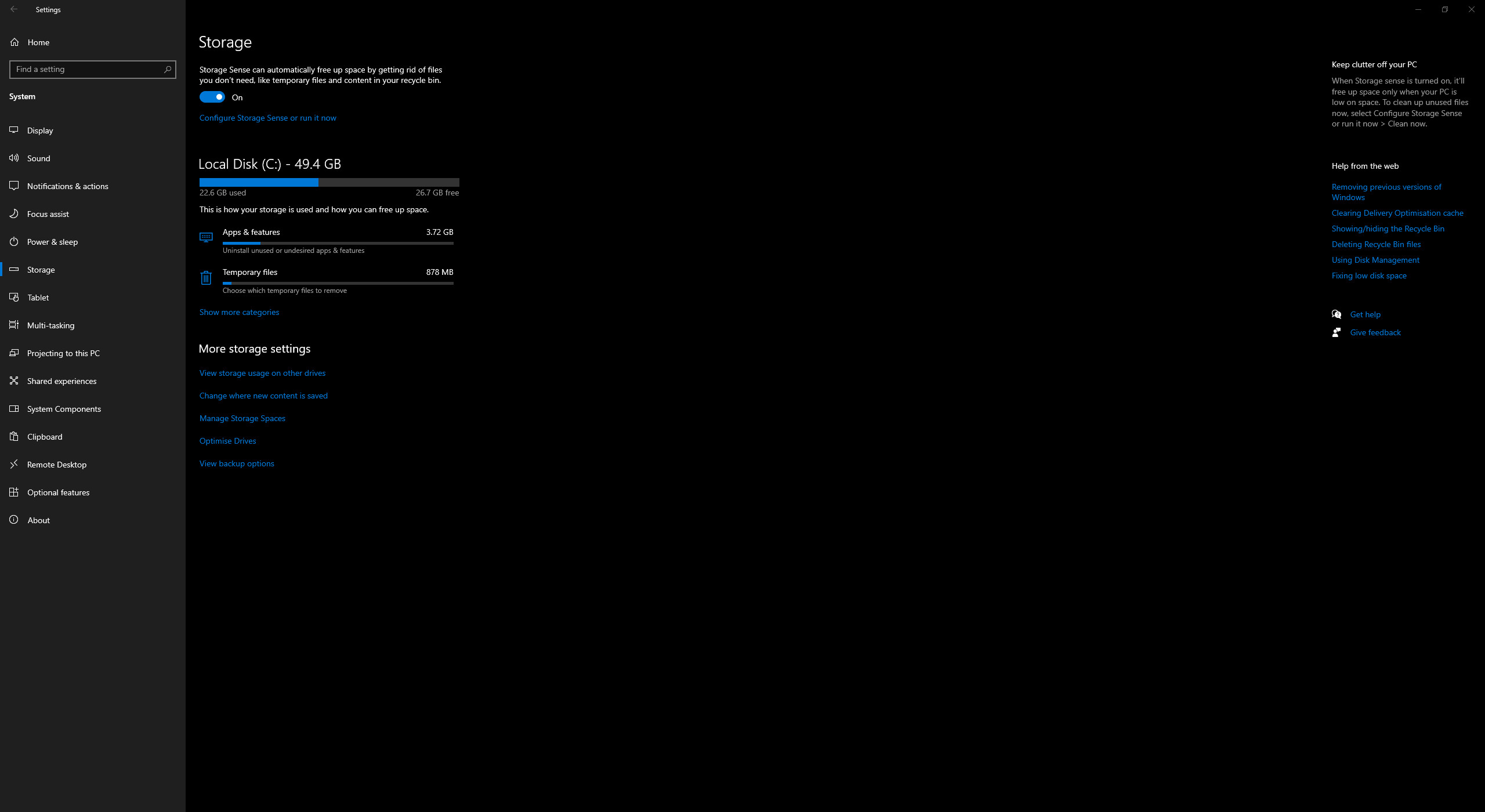 5. Reboot the device. The “Storage sense” function will then be activated.