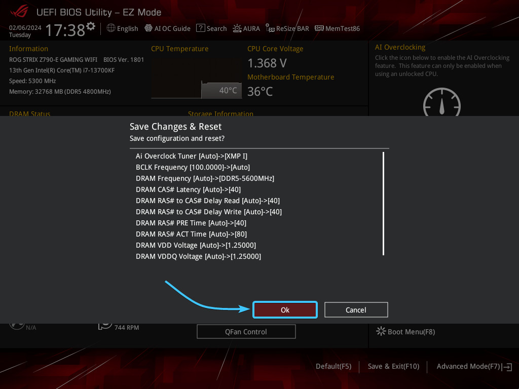 2. Look for the “XMP” section in the BIOS interface. Click “Disabled” button to select the option.