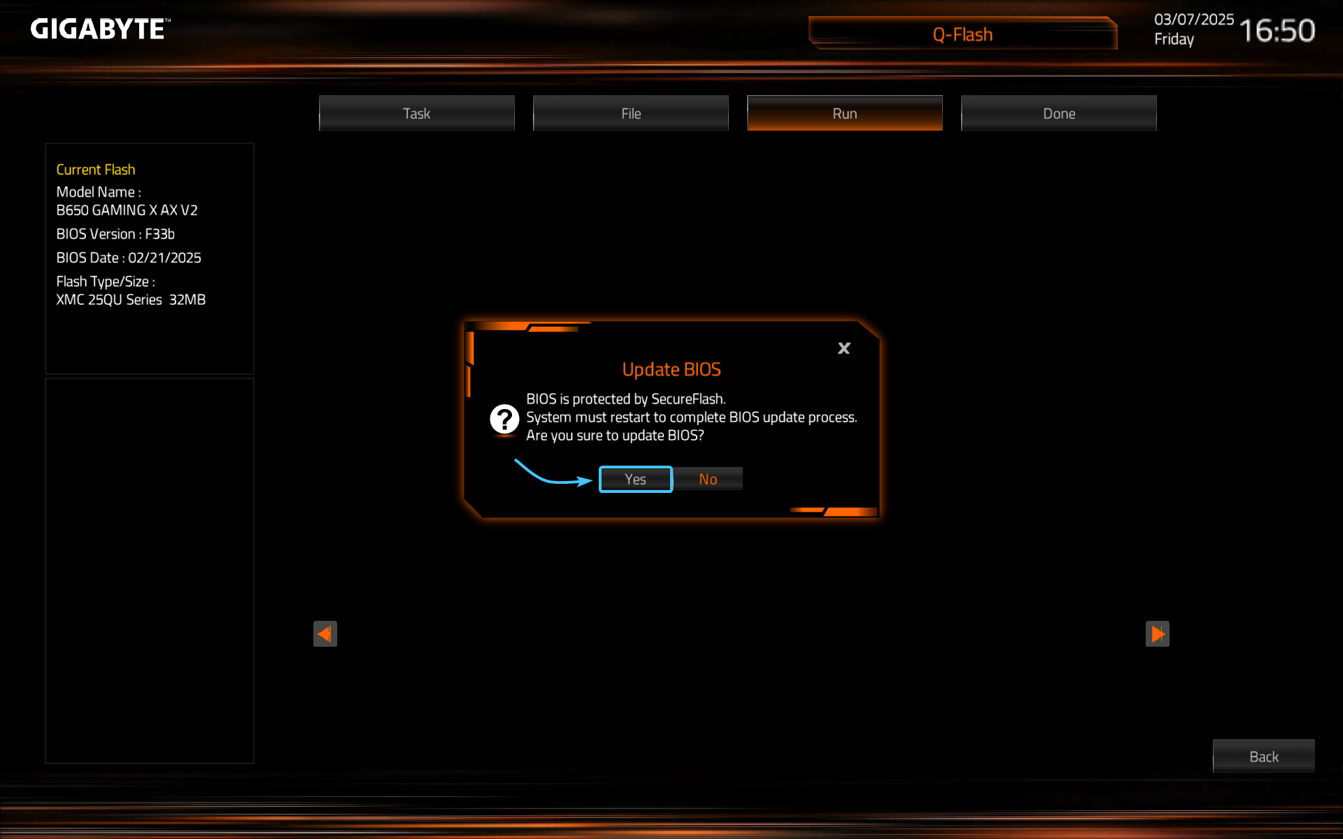 10. A notification message that the file has been read by the “Q-Flash” app will appear. Press the “Yes” button.
