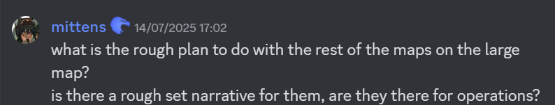 Frozen_Light: We have separate locations for Operations. And of course we have plans for the remaining places in the Zone. The main thing is to have the resources, and we'll figure something out.