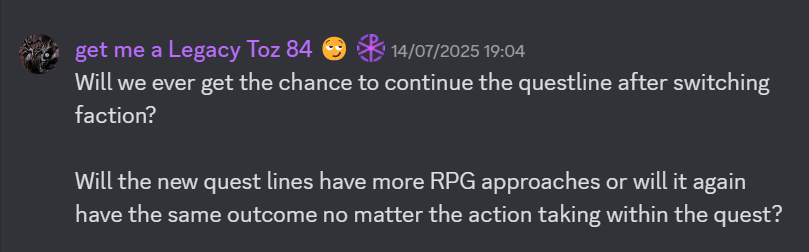 Frozen_Light: That is definitely part of the plan. As soon as the opportunity arises, we will take on such quest lines.