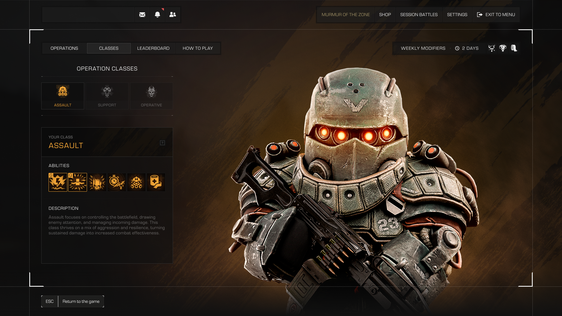 Assault — a combat-focused class designed to soak up damage and protect teammates.
