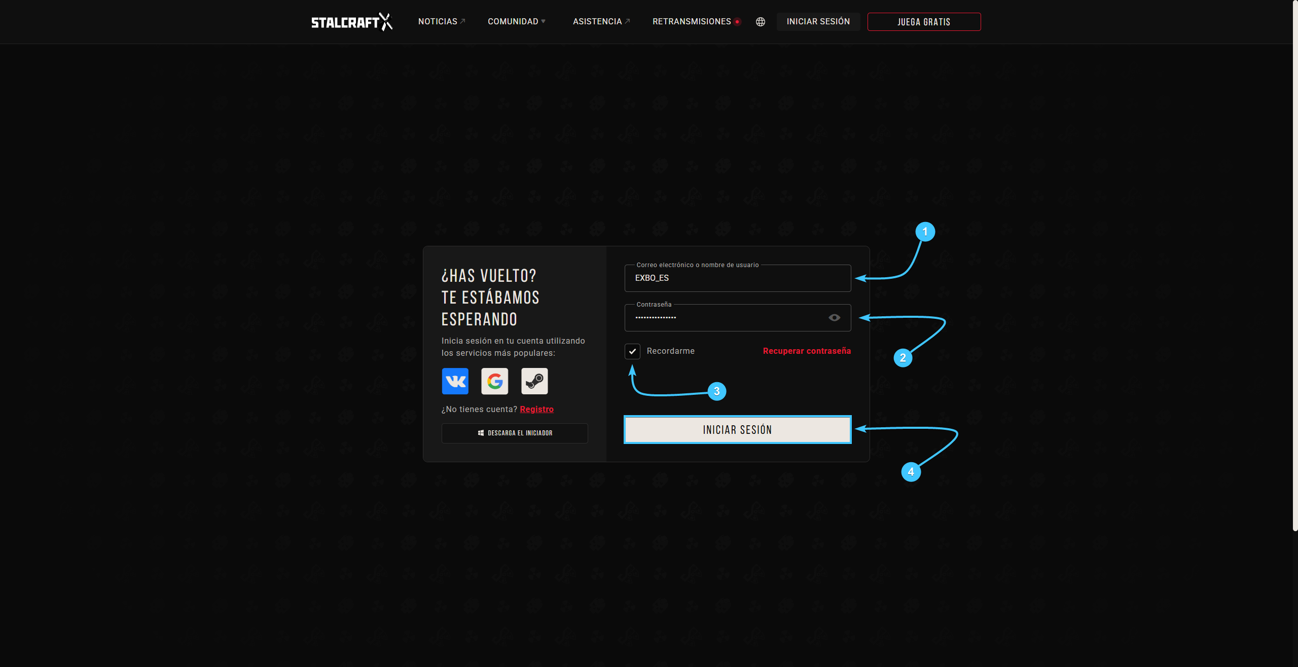 1. Ve a la página oficial del juego STALCRAFT: X e inicia sesión si es necesario.