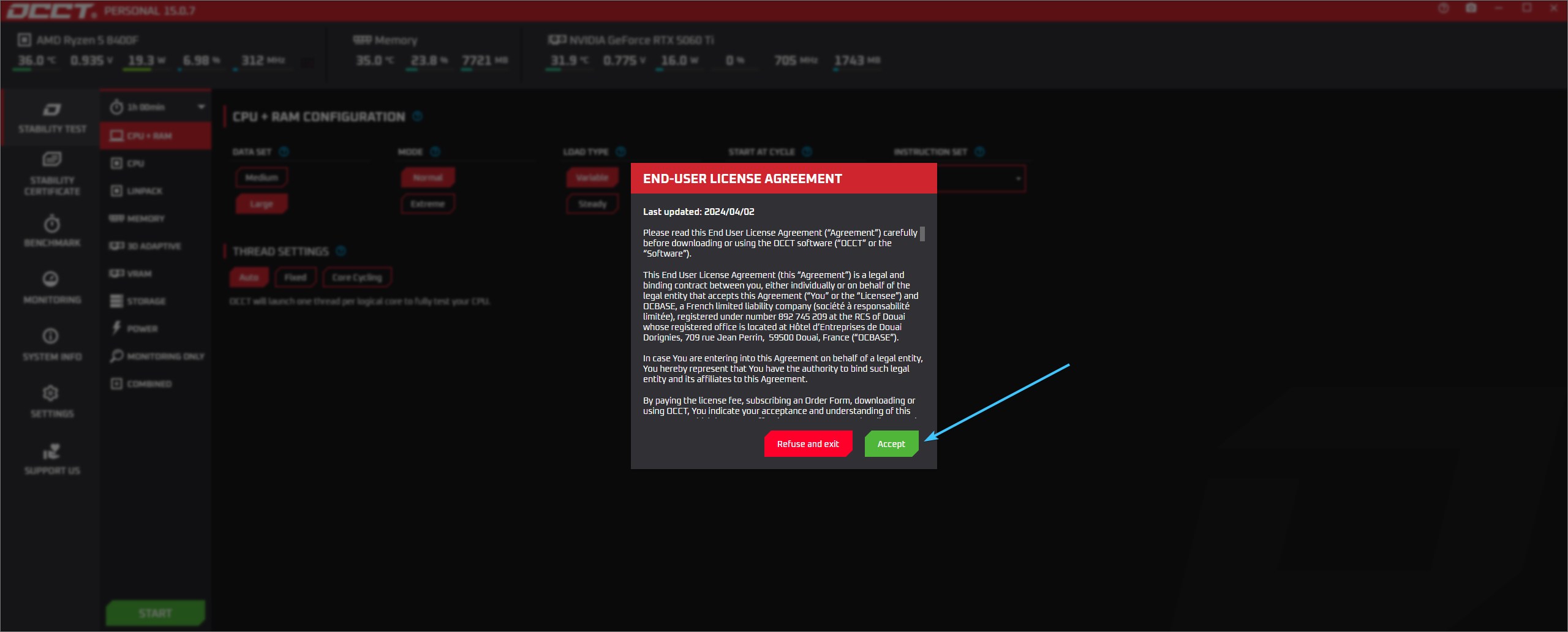 3. Lancez l'installateur téléchargé et installez l'application « OCCT » sur votre appareil.