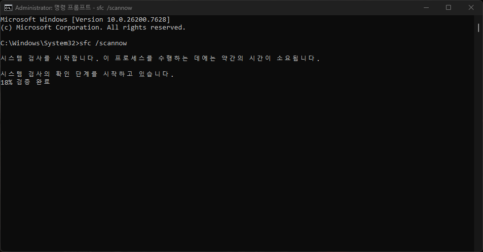 3. 무결성 검사 과정이 완료될 때까지 기다립니다. 이 과정은 몇 분 정도 소요될 수 있습니다.