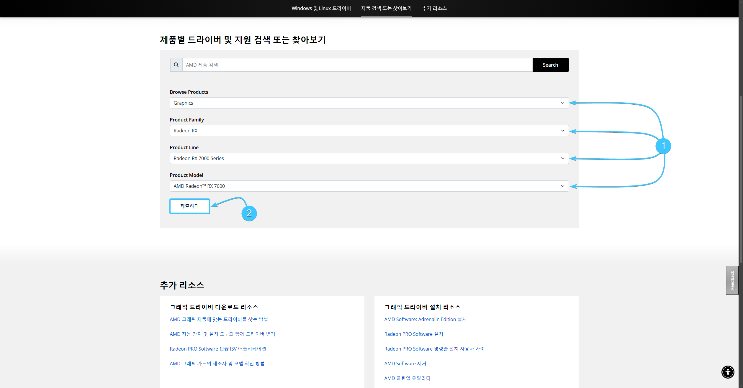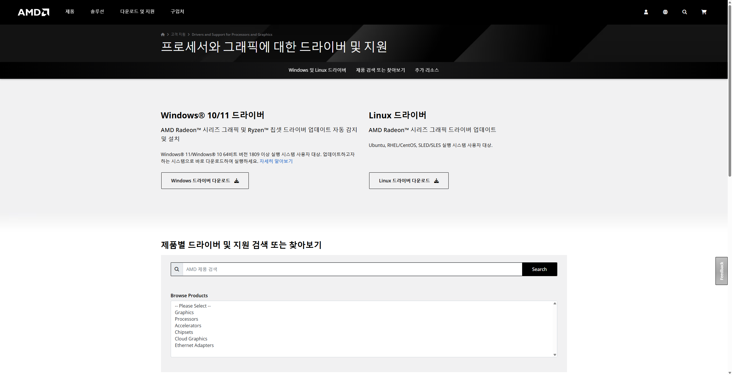1. AMD 공식 웹사이트에 있는 드라이버 페이지로 이동합니다.