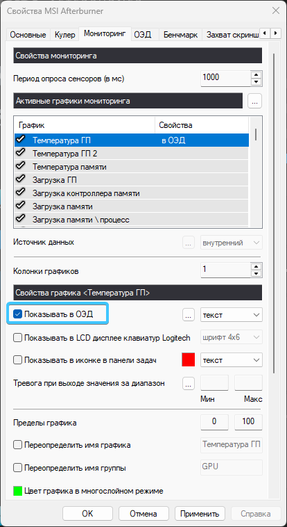 5. Нажмите на параметр «Температура ГП» и поставьте галочку «Показываться в ОЭД».