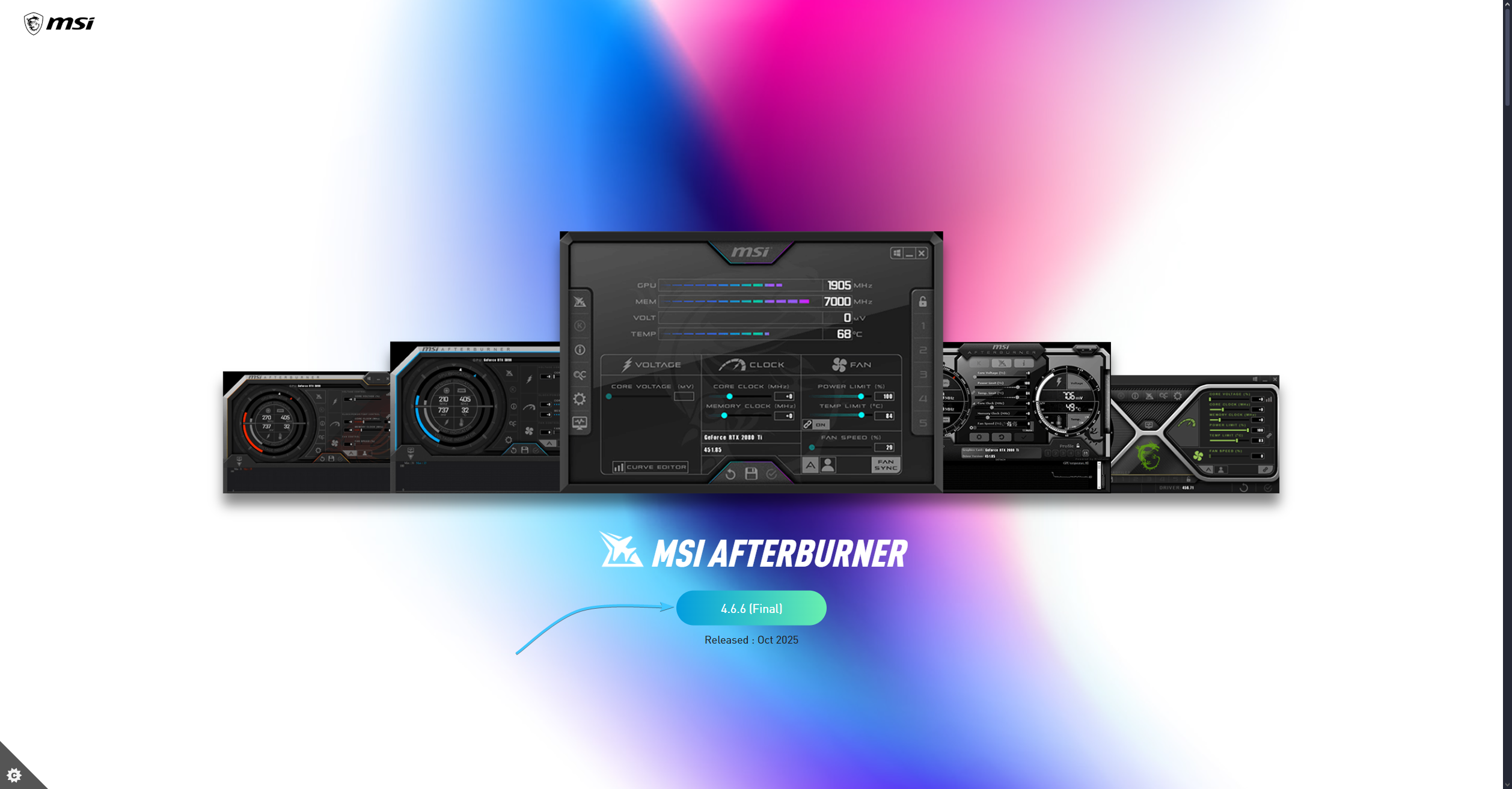 1. Перейдите на официальный сайт «MSI Afterburner» и нажмите кнопку «4.6.6 (Final)».