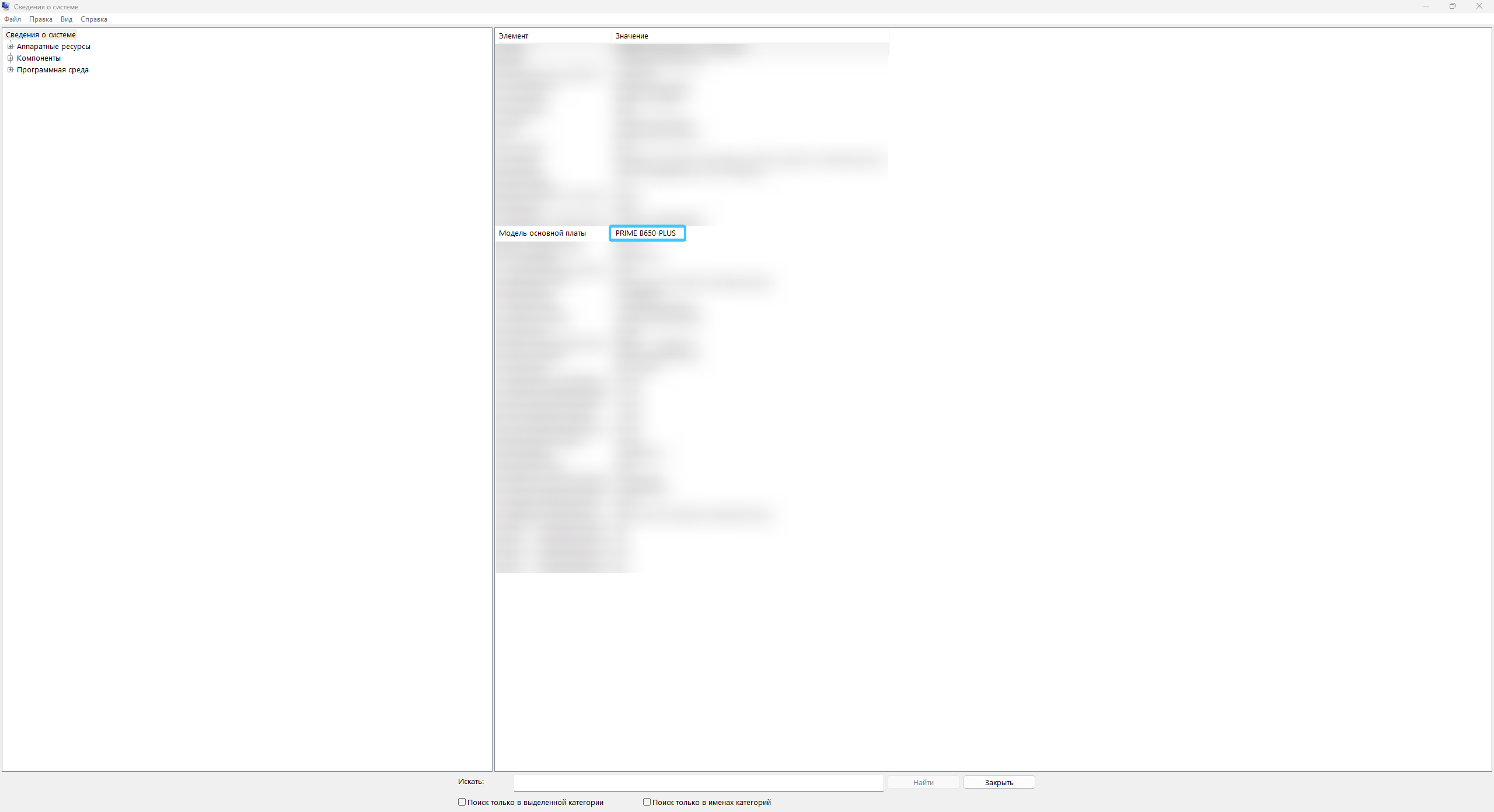 2. Появится окно «Сведения о системе». Отыщите пункт под названием «Модель основной платы».