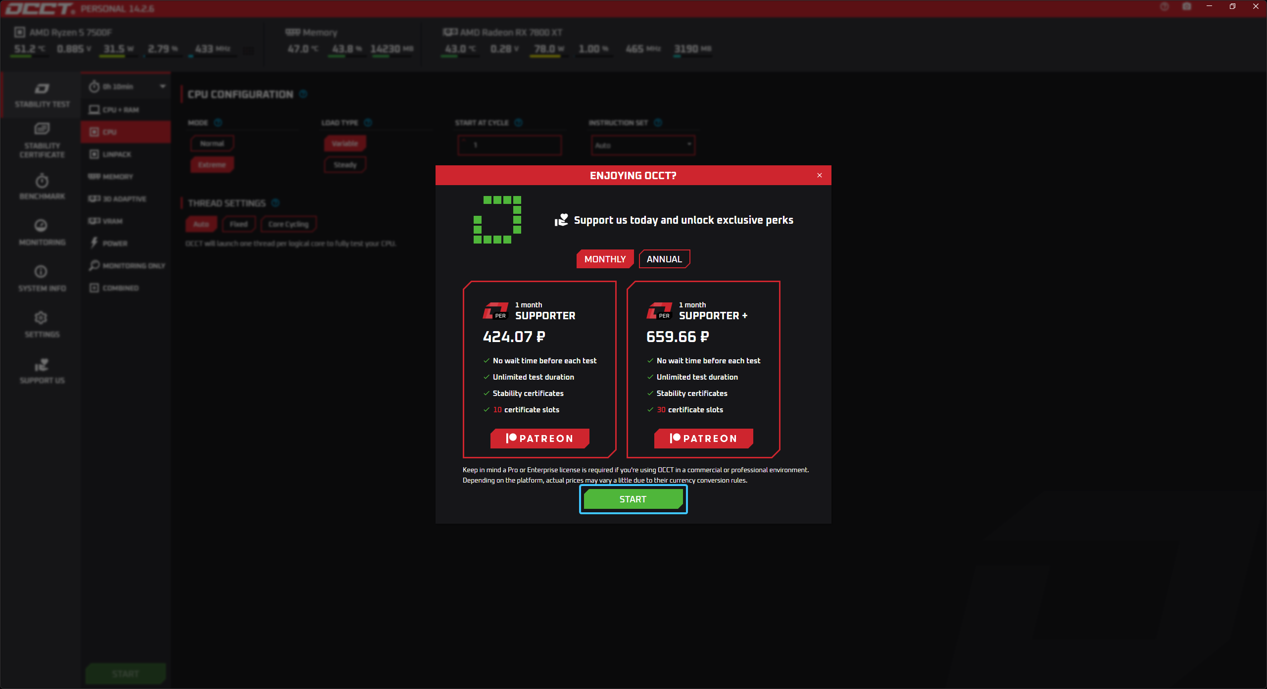 10. Появится окно поддержки. Обратите внимание, что финансовая поддержка для использования данного приложения в личных целях не обязательна. Вновь нажмите кнопку «Start» для запуска.