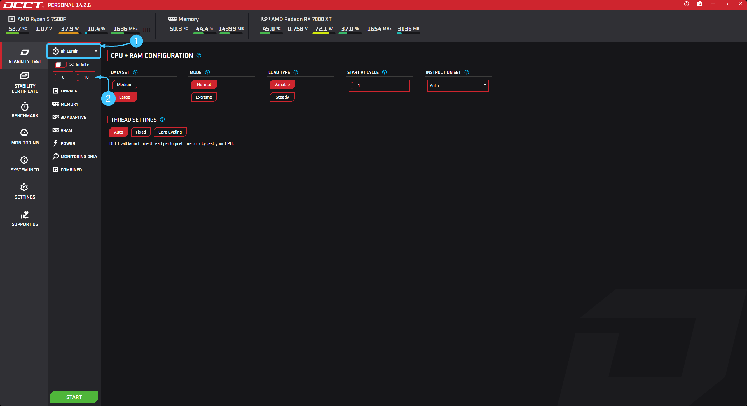 7. В параметре под названием «DATA SET» выберите вариант «Large» для тщательного теста.