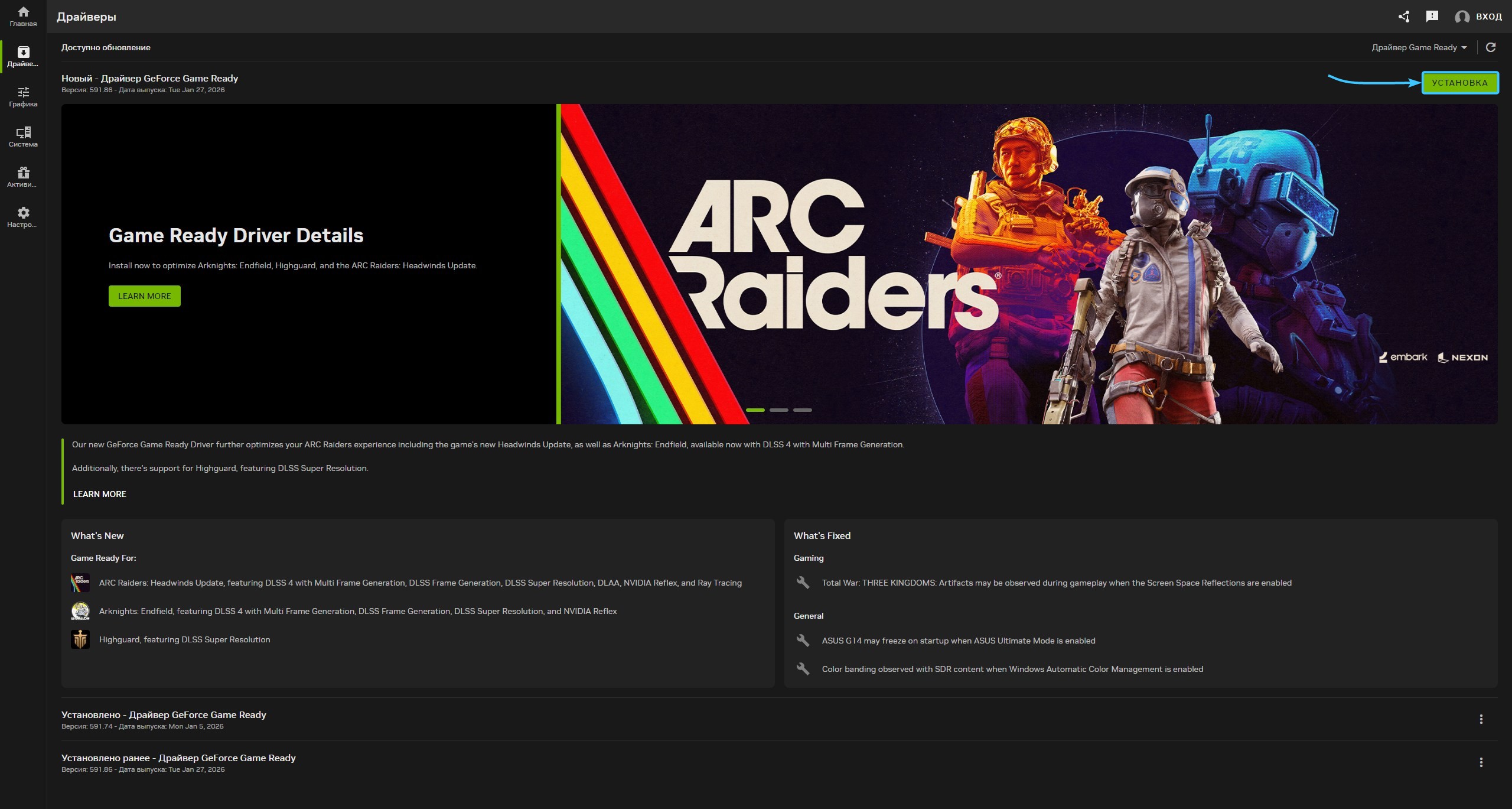 8. Дождитесь завершения скачивания драйвера на видеокарту. После этого нажмите «Установка».