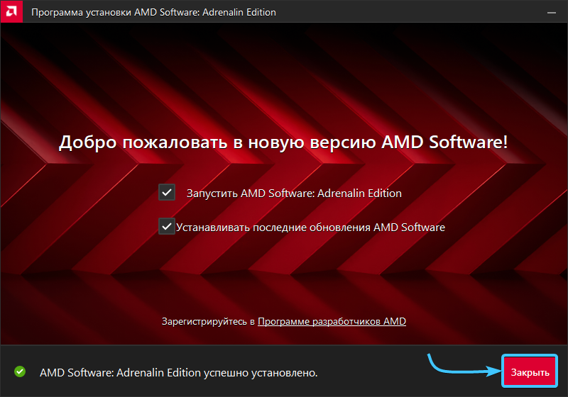 6. Нажмите кнопку «Завершить». Перезагрузите устройство для завершения установки драйверов.