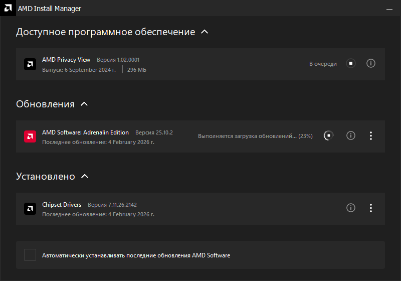 1. Запустите приложение «AMD Software: Adrenalin Edition». Сразу откроется вкладка «Дом». Раздел обновлений будет располагаться в правой части приложения.