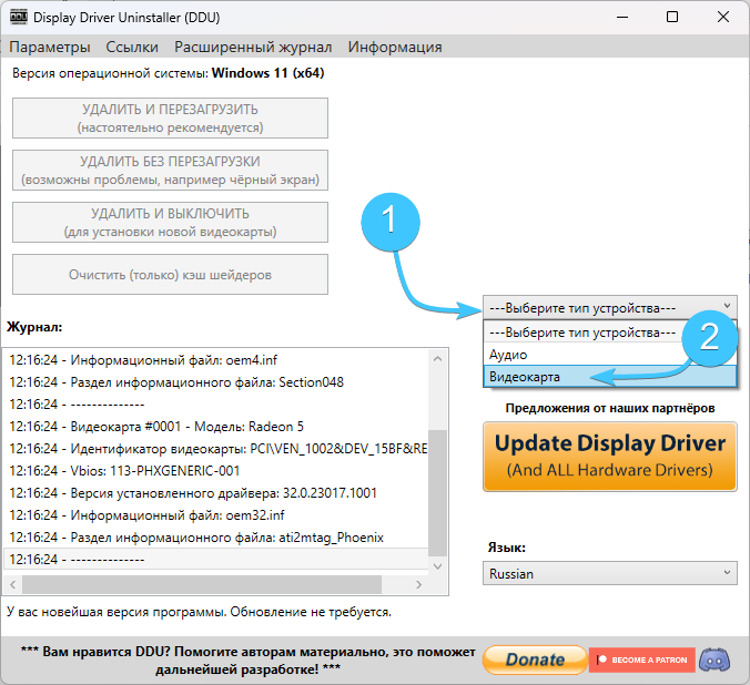 5. Откройте появившуюся на рабочем столе папку и запустите приложение «Display Driver Uninstaller».