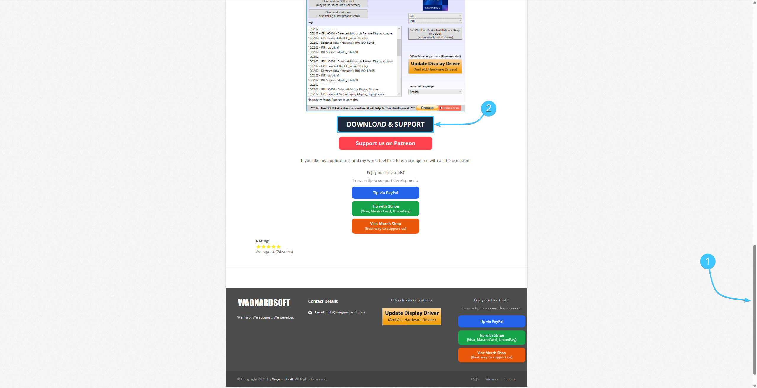 3. Вновь откроется новая страница. Нажмите кнопку «Download DDU (Portable / Self-Extracting)».