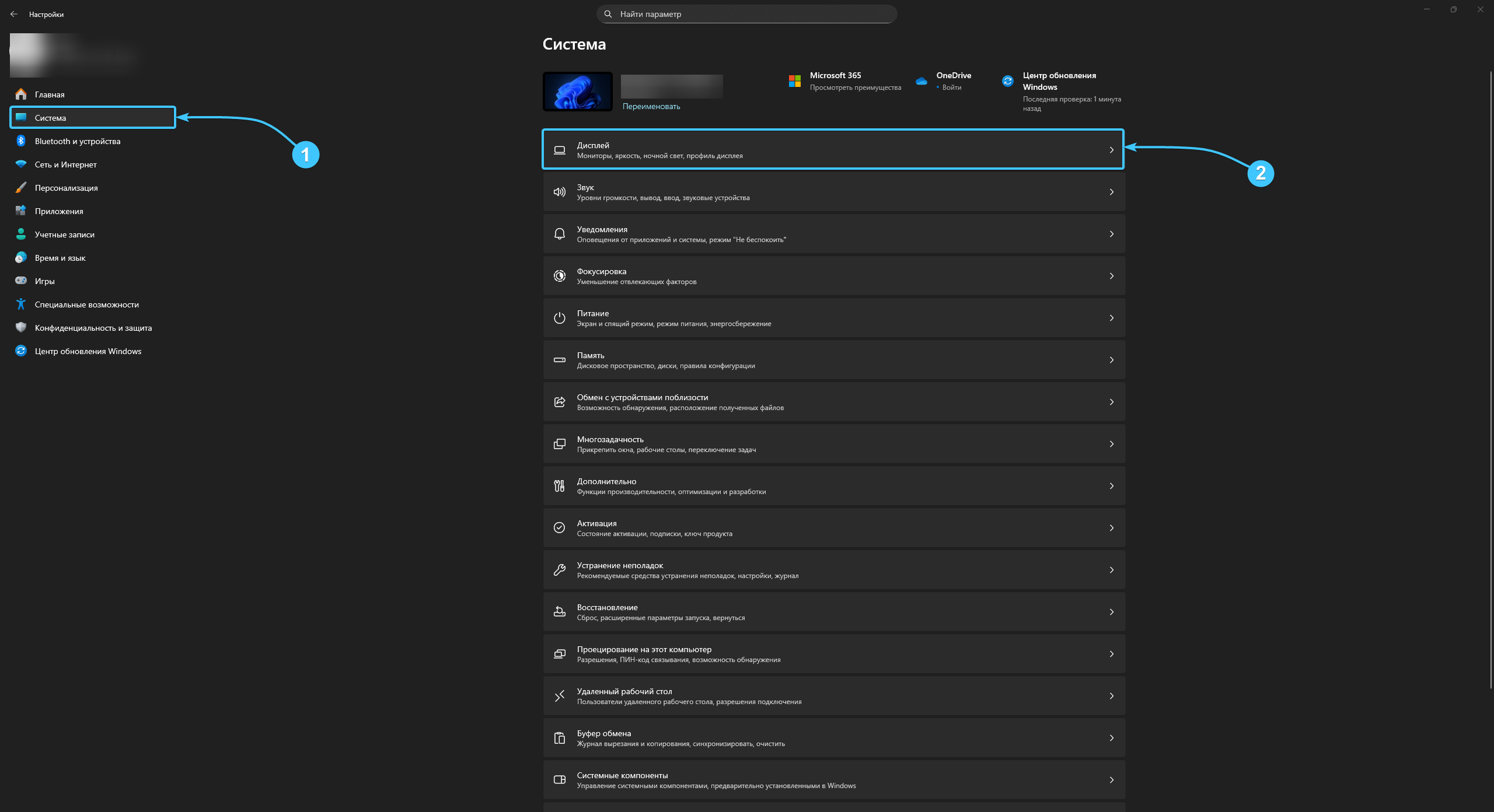 2. В списке откройте категорию «Система». Перейдите в раздел, который называется «Дисплей».