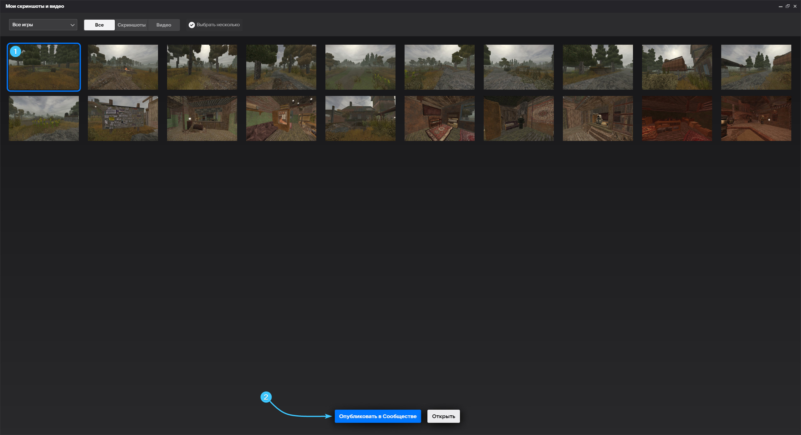 4. В появившемся окне выберите скриншот и нажмите кнопку «Опубликовать в сообществе».