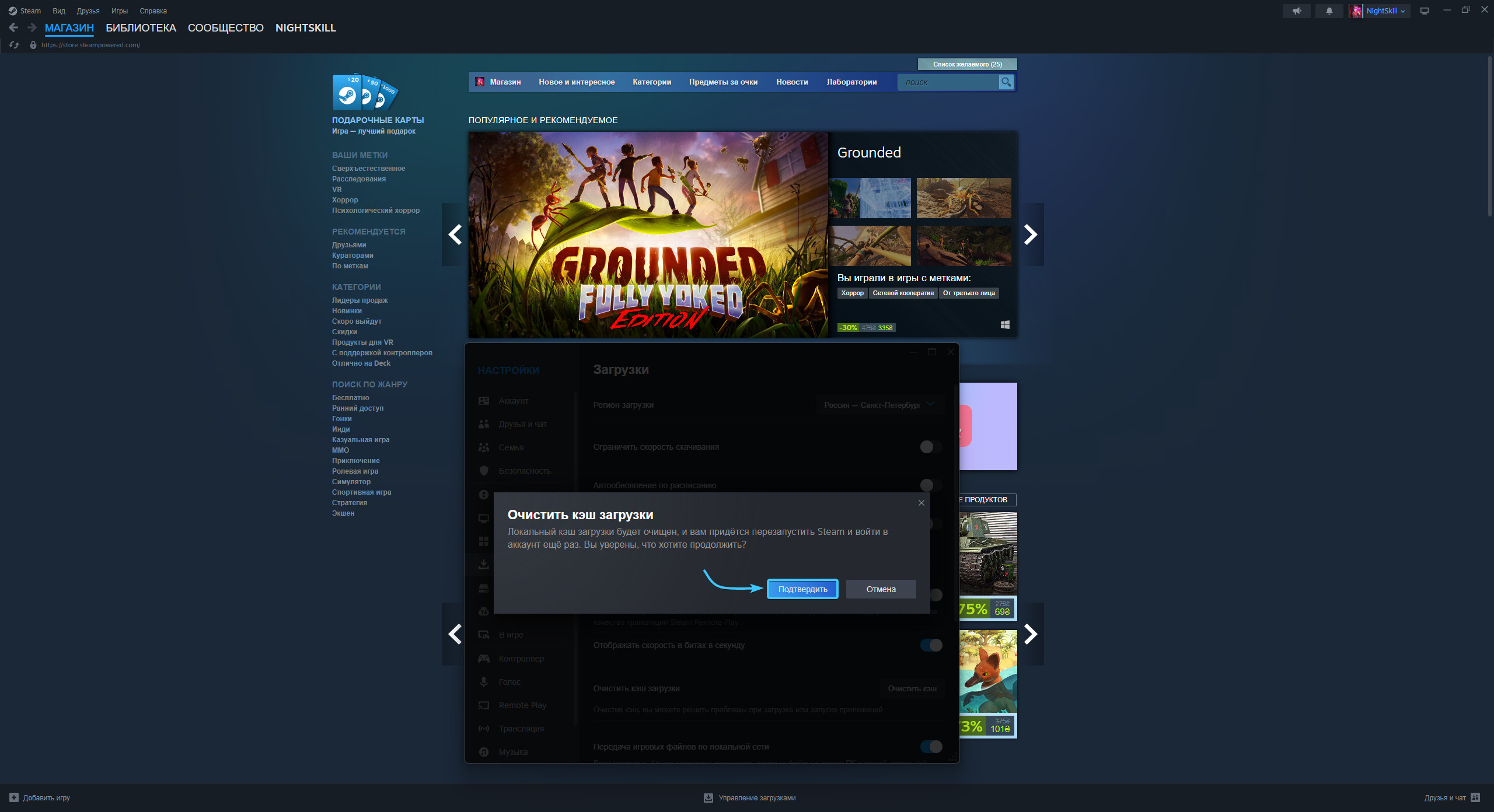 6. После этого очистка кэша загрузки приложения «Steam» будет завершена. Можно заходить в игру.