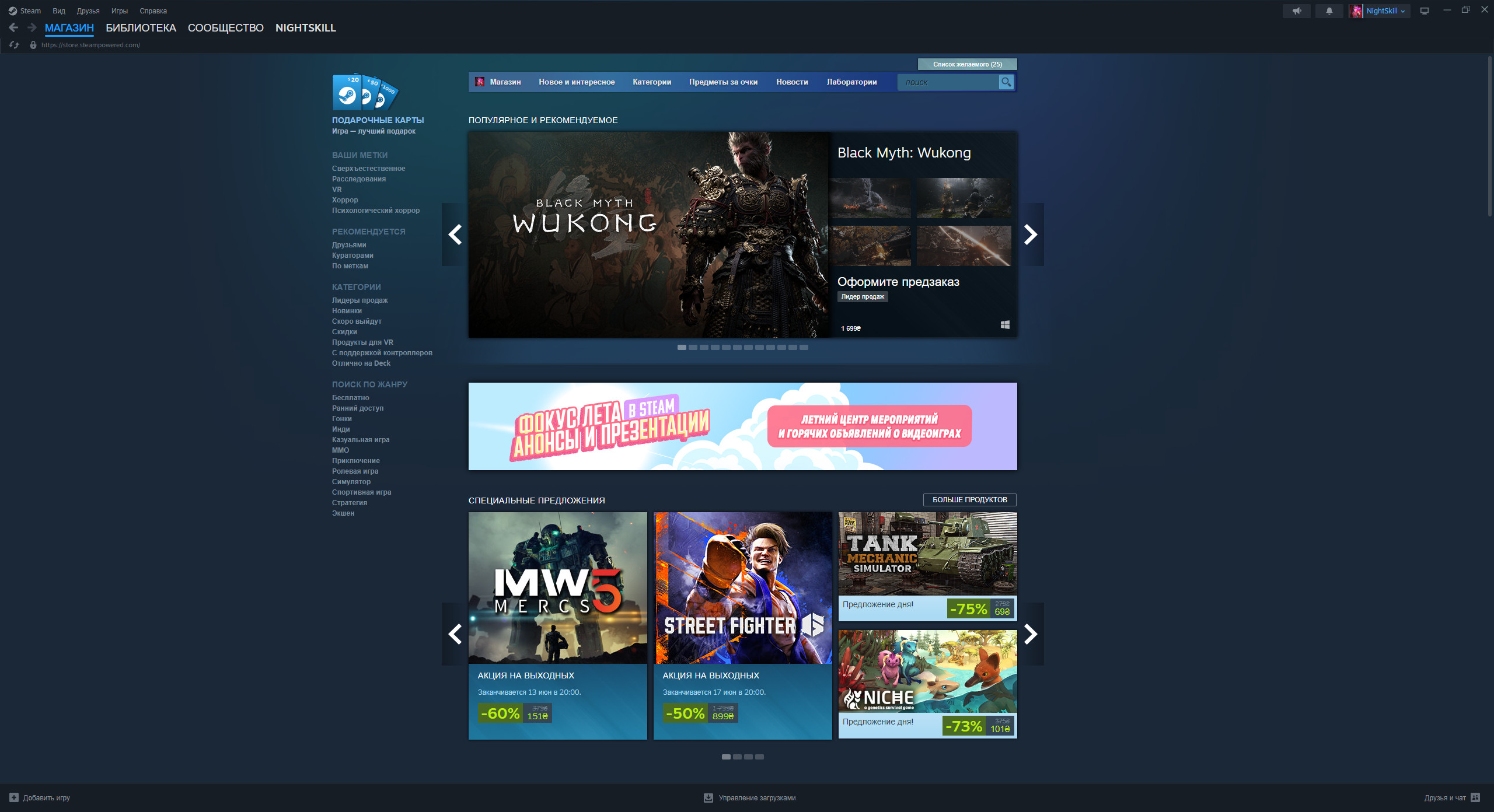 2. В левом верхнем углу нажмите на кнопку «Steam» и откройте раздел под названием «Настройки».